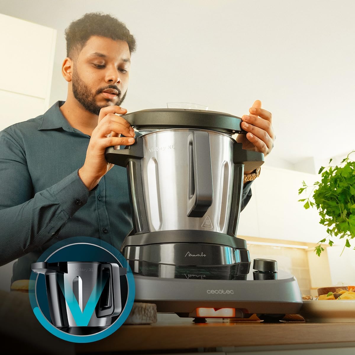 Cecotec Robot de Cuisine Multifonctions Mambo 12090 Habana. Écran tactile, App, 30 Fonctions, Balance, Bol en céramique, Bol en acier inoxydable qui convient pour un nettoyage au lave-vaisselle